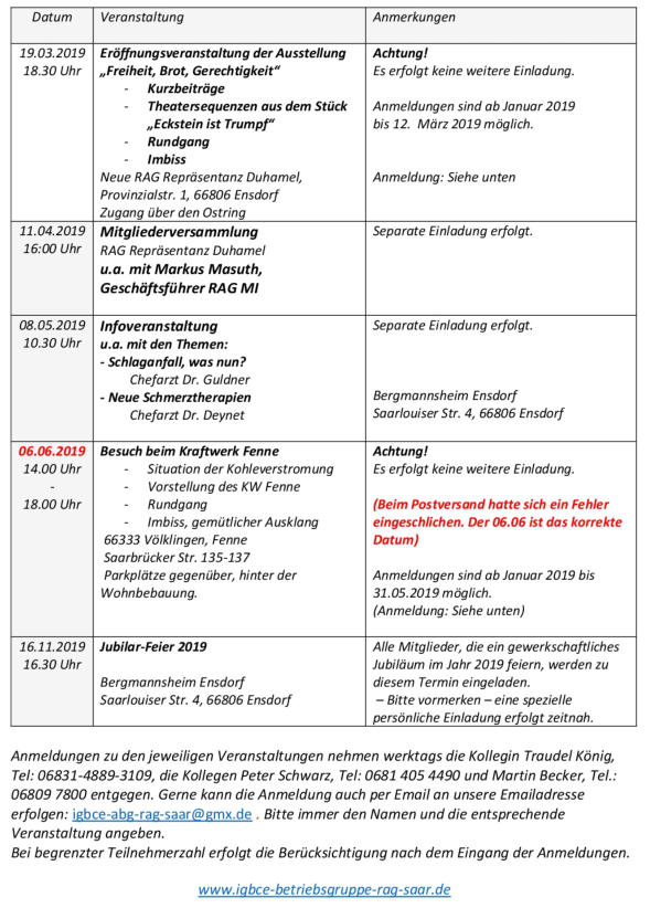 Terminplan 2019